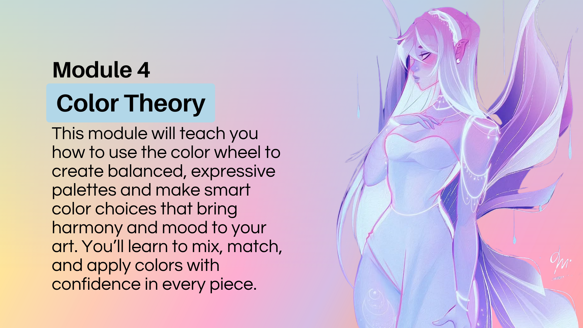 The course is divided into 7 modules, each designed to guide you through the entire process of bringing your characters to life as a beginner artist. I'll take you through every step you need to learn how to sketch with anatomy, to showcase emotions through expressivity, enhance them with color theory and more! You will come out from this course not only improving your skills but also having the tools required to kickstart your artistic journey even further, this is just the beginning!
